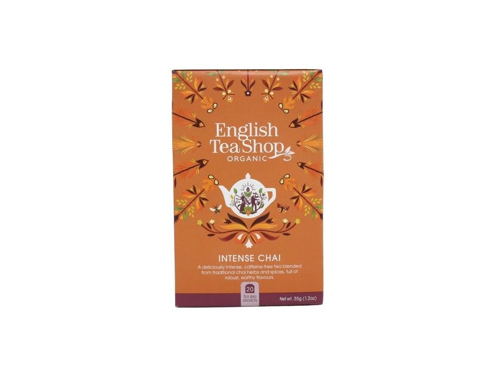 Intenzivní Chai od firmy English Tea Shop je bezkofeinová směs se skvělou zemitou chutí tradičních bylinek a koření. Obsahuje voňavou skořici, léčivý zázvor, kurkumu, kardamom, hřebíček, fenykl, pepř a lékořici.