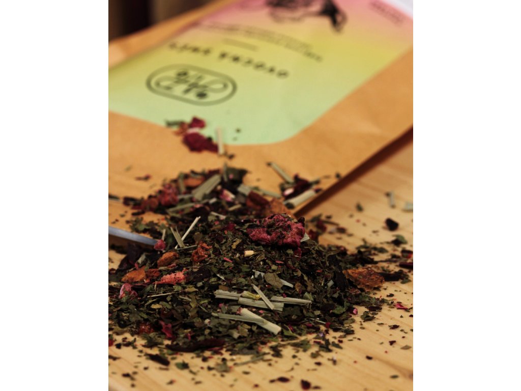 Složení: citrónová tráva, ibišek, jablko, máta, šípky, maliny, list ostružiny, rybíz, přírodní aroma