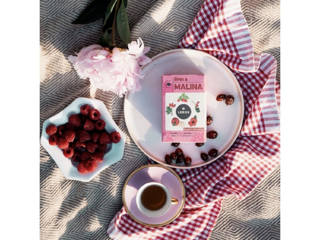 Sladkou chuť malin a malinového listu doplňuje lehce štiplavá, nakyslá chuť šípků.