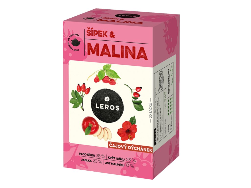 Složení: Plod šípku (38 %), květ ibišku (25 %), jablka (20 %), list maliníku (10 %), přírodní aroma (7 %).