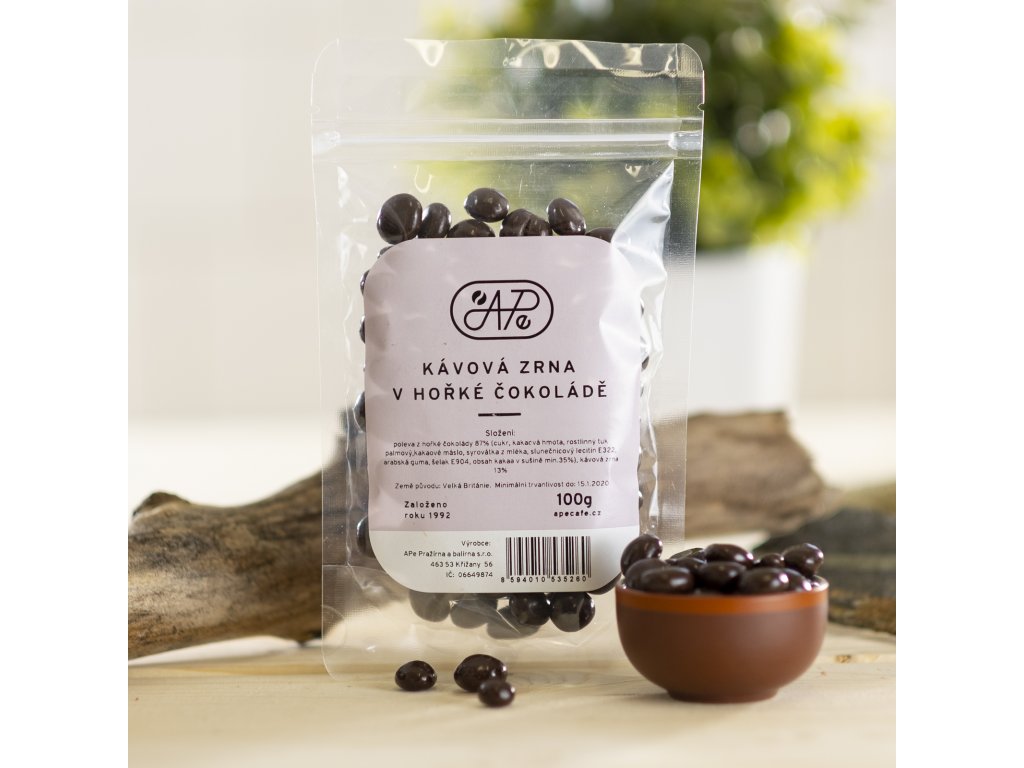 Kávová zrna v čokoládové polevě.