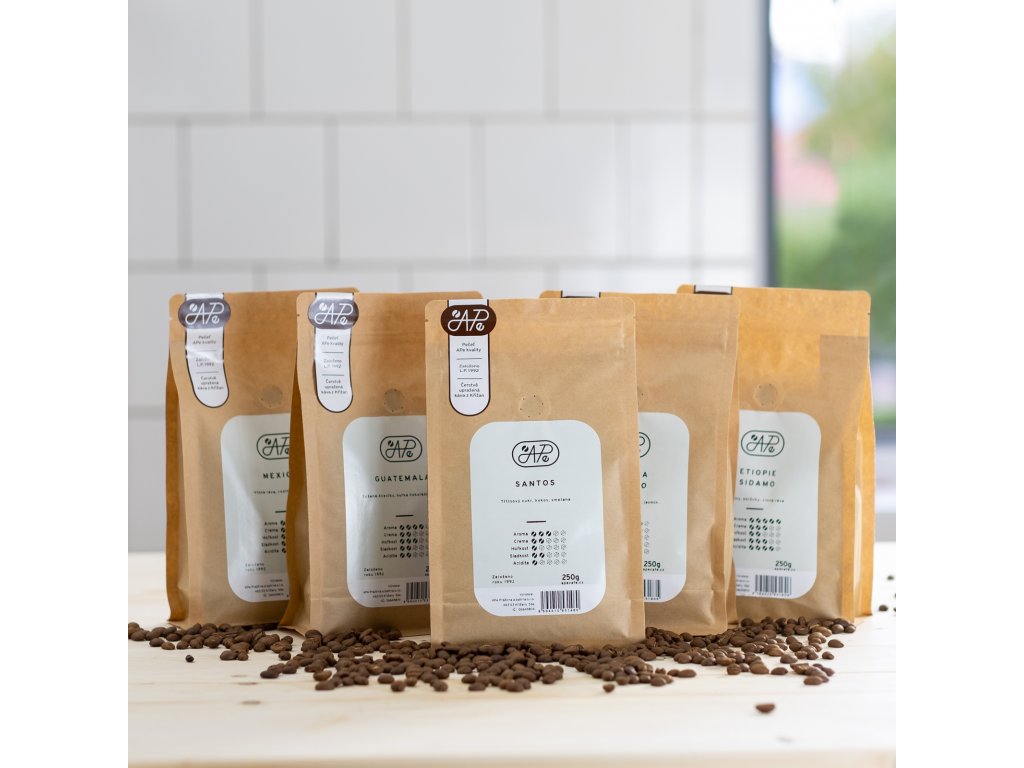 * Přesné složení balíčku se může lišit v závislosti na dostupnosti jednotlivých káv. V případě nedostupnosti určité kávy ji nahrazujeme kávou jinou, avšak podobného chuťového profilu.