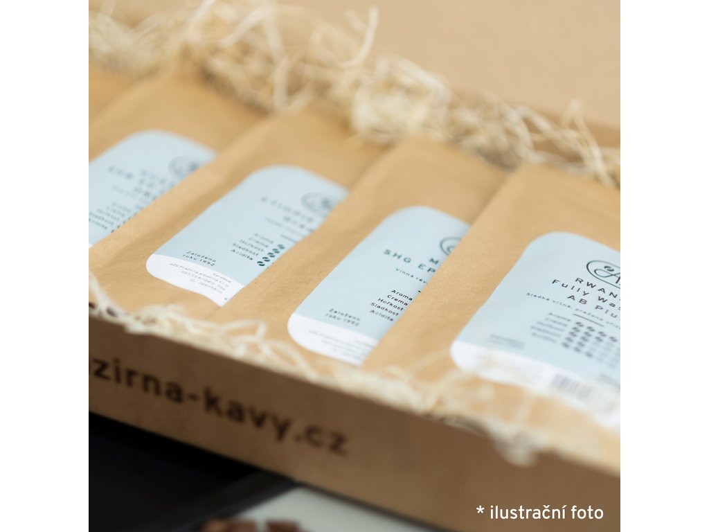 Chcete-li někoho potěšit, můžete mu nechat výběr našich káv takto krásně zabalit. Krabička je vyrobena na míru pro 5 kusů 100g káv, proto doporučujeme v případě výběru volit velikost balení kávy 100 gramů.