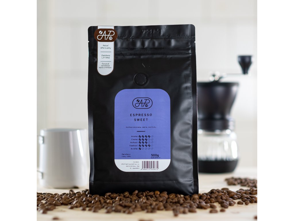 Směs Espresso Sweet je vhodná pro ty z vás, kteří preferují spíše jemnější kávové chutě. 20 % kávy robusta v této směsi poskytne Vašemu espressu nezbytnou cremu, ale nenaruší jemnou chuť zbylých 80 % vybraných arabik.