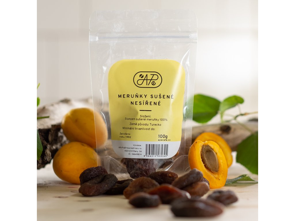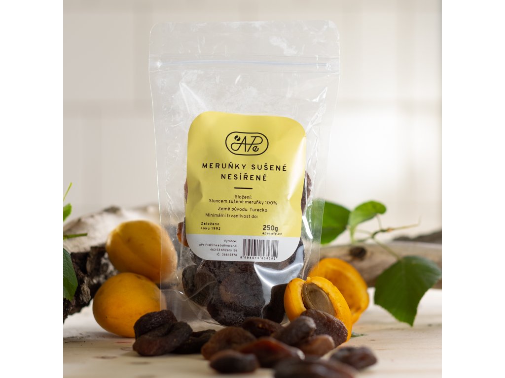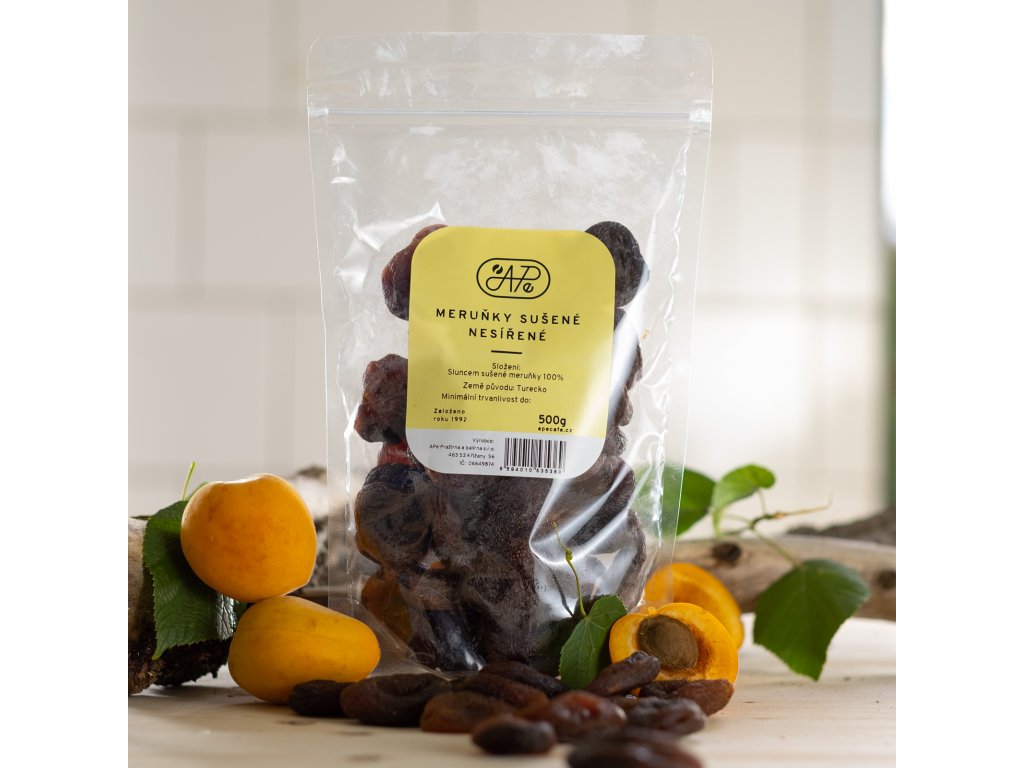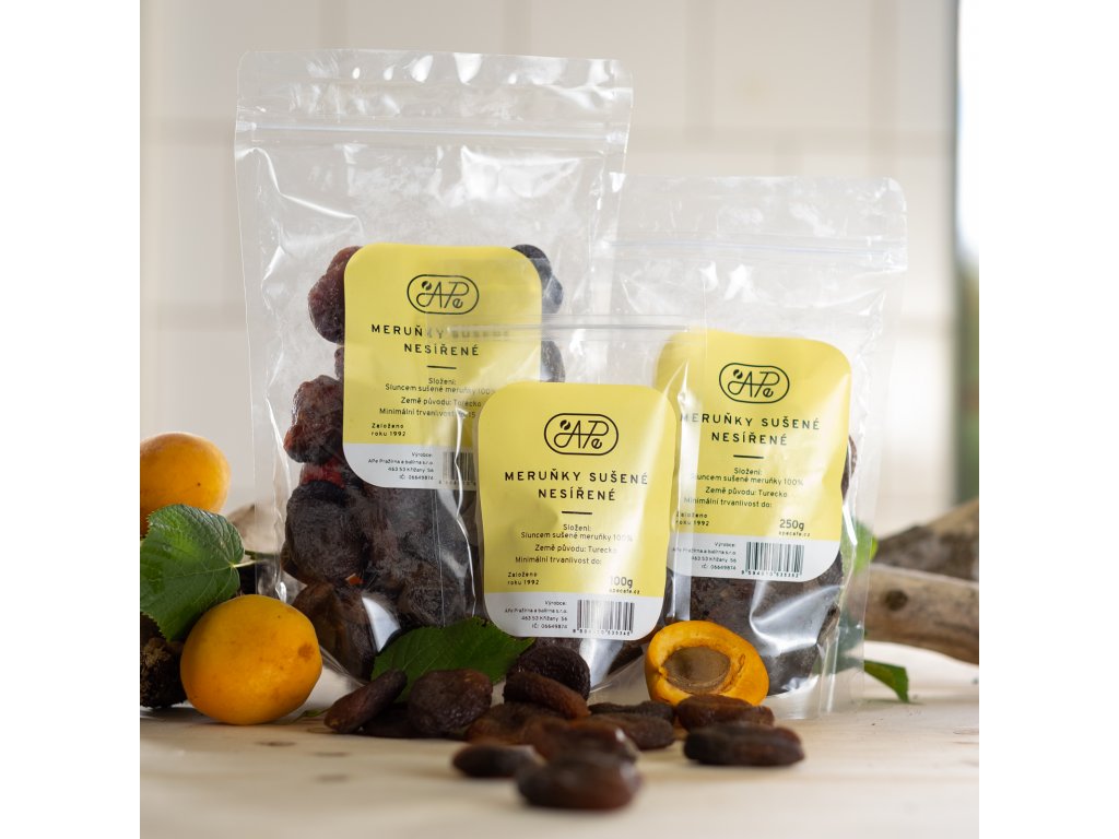 Sušené meruňky bez pecek, neslazené, nesířené.